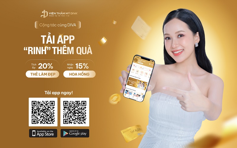 - Tích luỹ 20% tổng bill của khách hàng được giới thiệu vào thẻ làm đẹp và thoải mái trải nghiệm tân trang nhan sắc tại Viện thẩm mỹ DIVA.