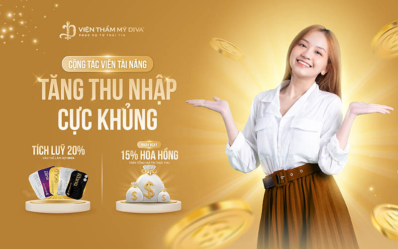 Trở thành cộng tác viên Viện thẩm mỹ DIVA nhận hoa hồng khủng ngay. Cơ hội chỉ dành cho những bạn biết nắm bắt. Ngay từ bây giờ, hãy liên hệ đến hotline 1900 2222 để nhận được hỗ trợ tận tình.
